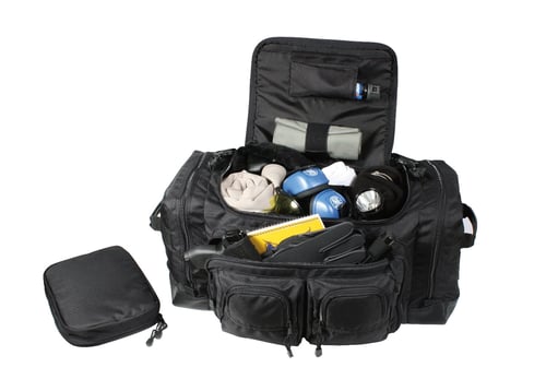 The Rothco Deluxe Law Enforcement Gear Bag is the perfect companion for police and law enforcement. The duty bag features a large main compartment with a removable liner & dividers, two large outer pockets on each end, and cargo handles. Inside of the top flap you'll find a large pocket with a smaller pouch. There's also a large front zippered compartment and two smaller front zipper pouches and a zippered compartment on the back of the bag. The gear bag measures 12.25" x 8" x 2.25" and is made of a durable polyester material and features a water resistant bottom. Also comes with an adjustable shoulder strap. WARNING: This product contains a chemical known to the State of California to cause cancer, birth defects and other reproductive harm.